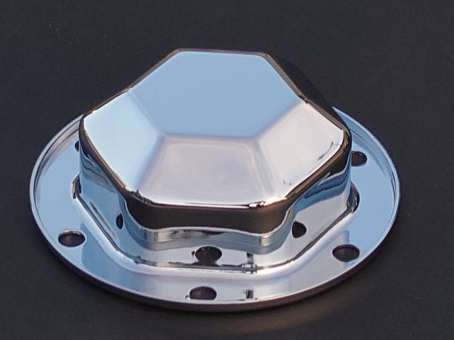 日野大型車専用 六角型メッキフロントハブキャップ 国産高級メッキの輝き! 数量限定品、なくなり販売次第終了いたします。